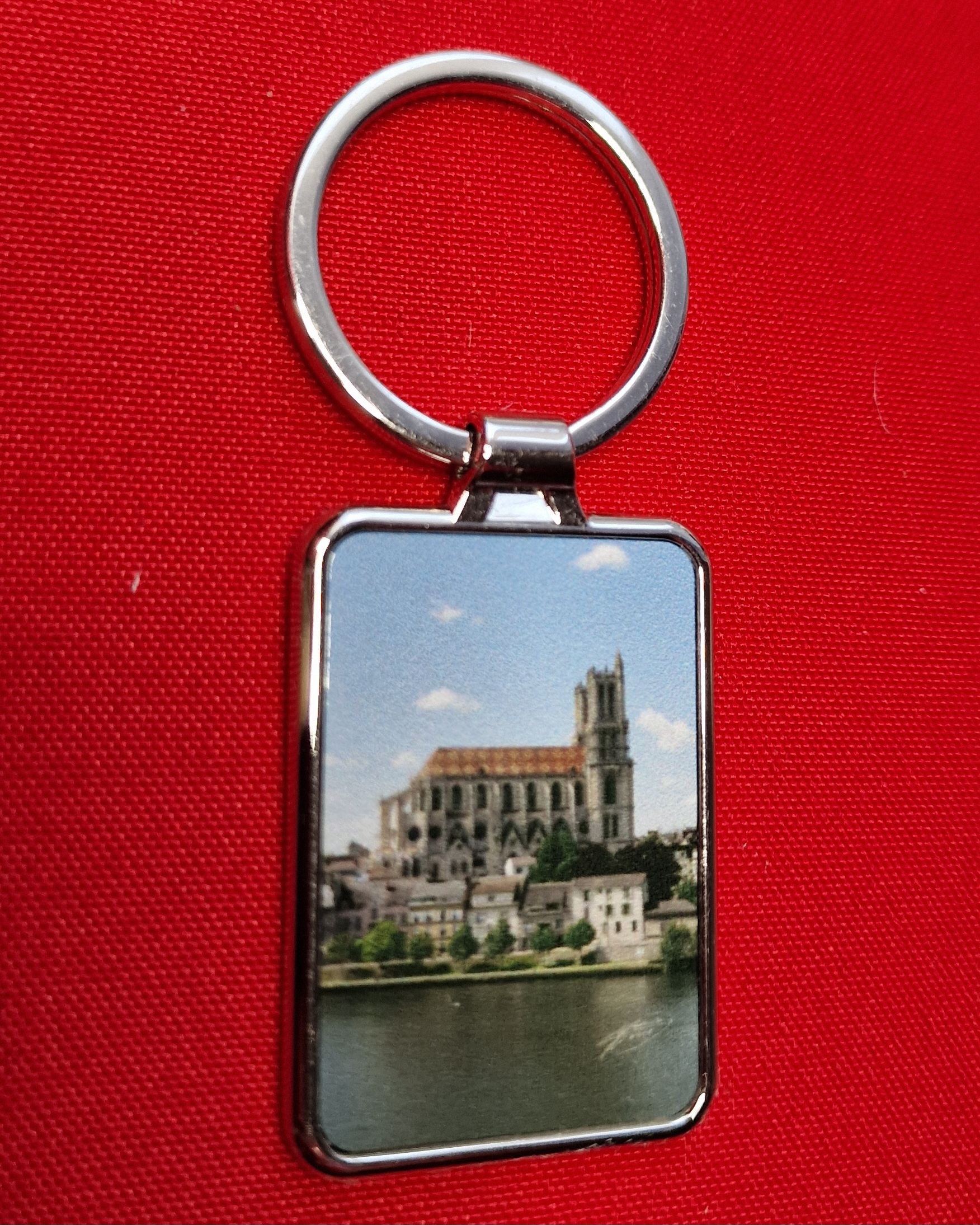 Sur ce porte-clés, retrouvez une photo de la collégiale Notre-Dame de Mantes-la-Jolie, vu depuis l’autre côté de la Seine.